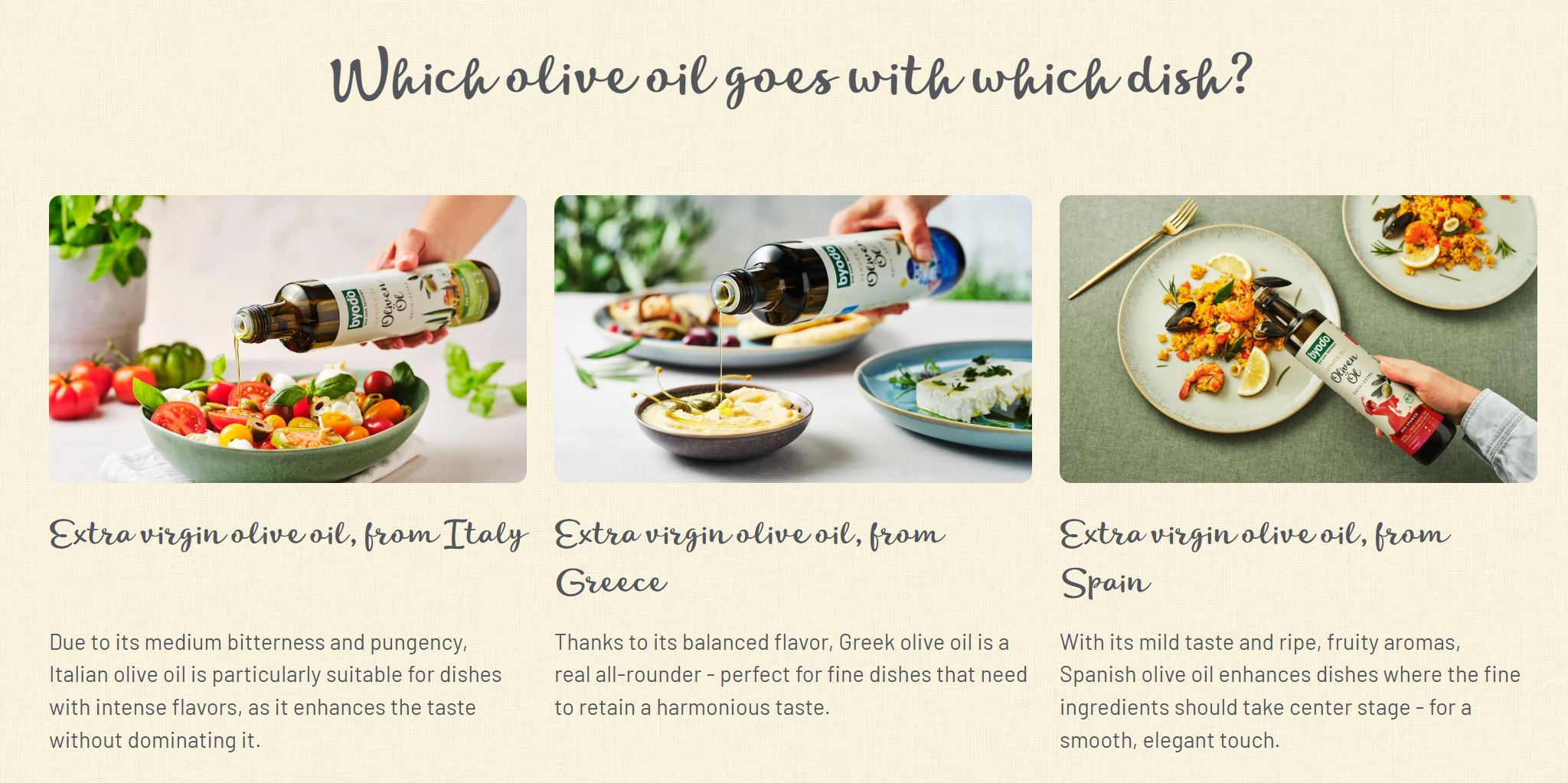 - ByodoÀÇ ¸ðµç À¯±â³ó °í±Þ ¿ÀÀÏÀº ¿µ¾ç¼Ò¸¦ º¸Á¸ÇÏ´Â ³Ã¾ÐÂø °ø¹ýÀ¸·Î »ý»êµÇ¸ç, ù ¹øÂ° ¾ÐÂøºÎÅÍ ÀÚ¿¬½º·´°Ô ÃßÃâµË´Ï´Ù. Byodo À¯±â³ó °í±Þ ¿ÀÀÏÀÇ ´ëºÎºÐÀº "¹öÁø(Virgin)"À¸·Î Ç¥±âµË´Ï´Ù. ÀÌ·¯ÇÑ ´ÜÀÏ Ç°Á¾ ¿ÀÀÏÀº ³Ã¾ÐÂø ÈÄ ¿©°ú °úÁ¤¸¸ °ÅÃÄ ½Å¼±µµ¿Í ÃÖ°í ǰÁúÀ» º¸ÀåÇÕ´Ï´Ù. ByodoÀÇ À¯±â³ó ¿¢½ºÆ®¶ó ¹öÁø ¿Ã¸®ºê ¿ÀÀÏ¿¡´Â ÃÖ»ó±Þ ¿Ã¸®ºê¸¸À» »ç¿ëÇÕ´Ï´Ù. ¼ÕÀ¸·Î ¼öÈ®ÇÑ ¿Ã¸®ºê´Â ¸ÕÀú ¼¼Ã´ÇÑ ÈÄ ÃÖ´ë 27¡ÆCÀÇ Àú¿Â¿¡¼ ºÎµå·´°Ô ³Ã¾ÐÂøÇÕ´Ï´Ù.
